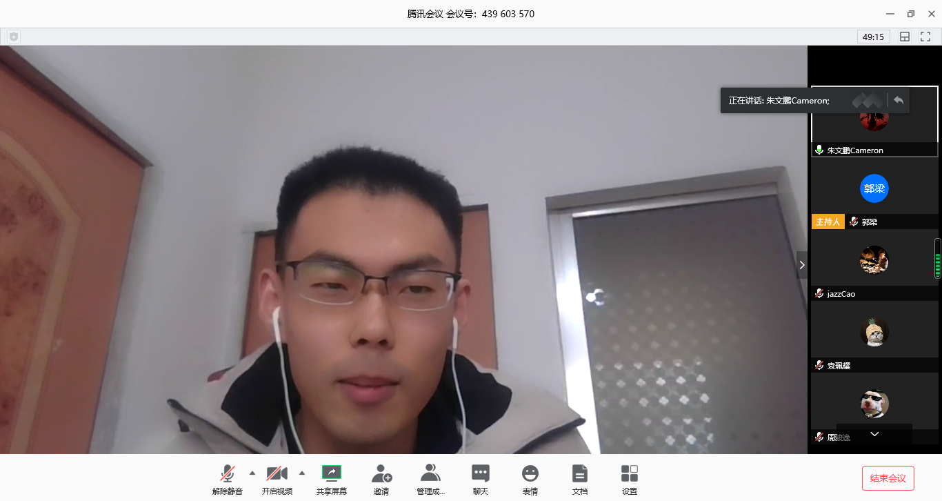 2020年4月8日星期三14:00,1708“硬核学长学姐”系列活动——“考研经验分享”顺利举办,活动以腾讯会议线上直播形式开展。本次活动由辅导员郭梁主持,辅导员田莉娟、1708、1808以及体育班部分同学积极参加,特别邀请了2015级优秀的学长学姐朱文鹏、李璐,来为大家做一次考研准备的经验分享。