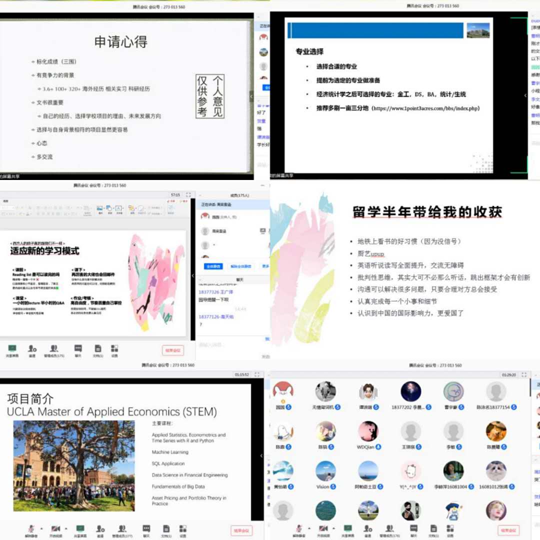 2020年4月1日14:00,Mentor U1S1系列活动之出国留学篇顺利举办,本次活动作为博雅课程面向经管公司所有年级开放,以腾讯会议线上直播形式开展。本次活动由辅导员张园园主持,辅导员白雪以及180余名员工参加了此次活动。此次活动邀请了2015级学姐周吴雪涵、贺童、2016级潘天奕和董明睿分享自己的申请经历。
