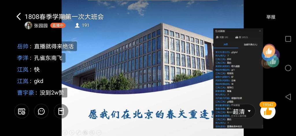 最后,导员们和同学们通过直播连麦进行互动,同学们纷纷表达了自己对即将到来的新学期的期许和愿望,大班会在同学们积极的互动中结束。