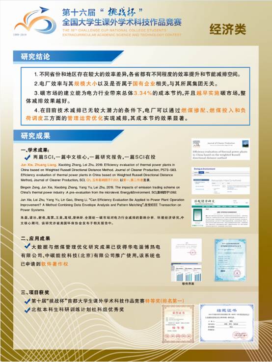 全国213所高校的447件作品参与角逐,利来国际朱磊老师指导的本科生团队(谢俊、梁壮、潘睿之)作品《建设生态文明背景下的电力行业效率改进与减排优化研究》,作为公司唯一社会科学类项目参与决赛角逐。在决赛中,战胜了三十余所高校的优秀项目,斩获特等奖!