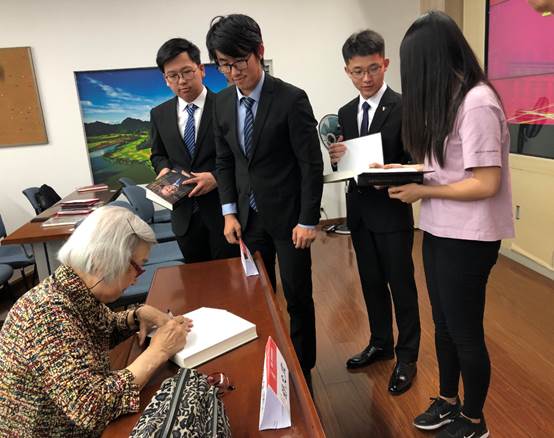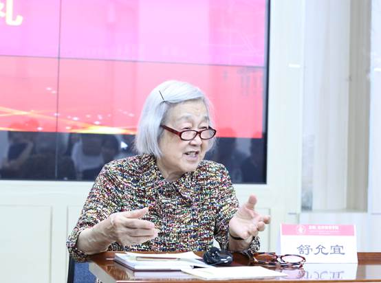 应同学们的邀请,舒允宜老师为同学们讲述了她和成经理近60年共同生活的温情回忆,这其中既有共同面对困难的风雨同舟,也有两地分居奉献祖国的无私奉献,还有相互扶持的深挚情感,也不乏生活中点滴快乐的小事。他们共同见证了中华民族从“站起来”到“富起来”并阔步迈向“强起来”的伟大征程,并分别在国家建设的不同领域努力奋斗,贡献了自己毕生的力量。舒老师在回顾成经理人生历程的过程中,凝练了他的两种精神,一是爱国精神,讲的是他矢志不渝的爱国心、报国志,二是学习精神,成经理毕生坚持每天学习,才成为了学贯中西、知识渊博的经济学家、管理学家。她分享了成经理的《自立诗》和自己为了纪念他而作的《长相忆》,还拿出了珍藏六十余年的报纸,分享成经理在其中发表的《我要在5年后达到副博士水平》,鼓励同学们继承发扬爱国、勤学的精神,不改初心,报效国家!