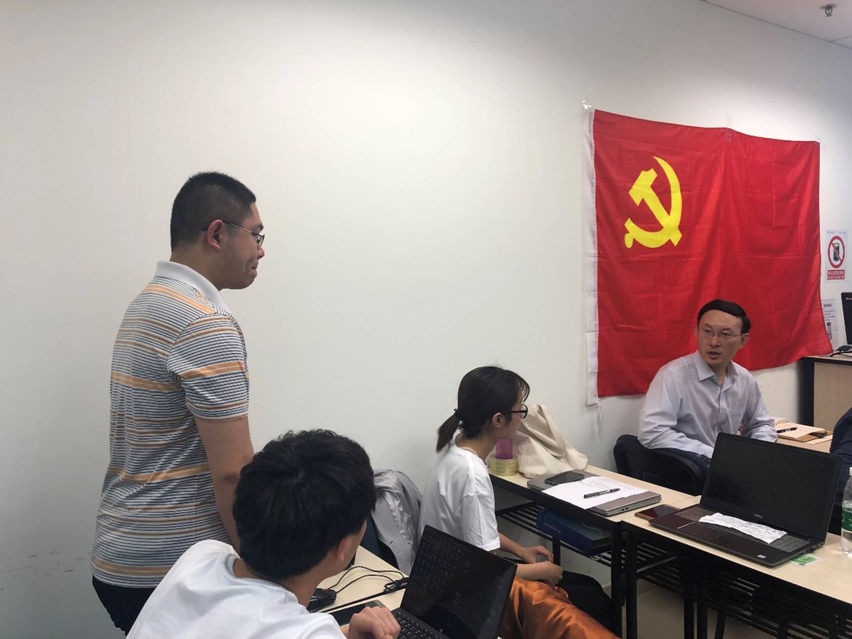 2019年4月22日19:00,本科大四党支部在新主楼A1038举办2019年4月份主题党日活动。本次会议由1508(一)支部支书丁宁同志主持,参加本次会议的有公司经理范英、副经理秦中峰、辅导员朱鹏宇、白雪和王文涛,以及本科大四党支部成员。会上秦中峰副经理做《国家监察体制改革》主题党课。