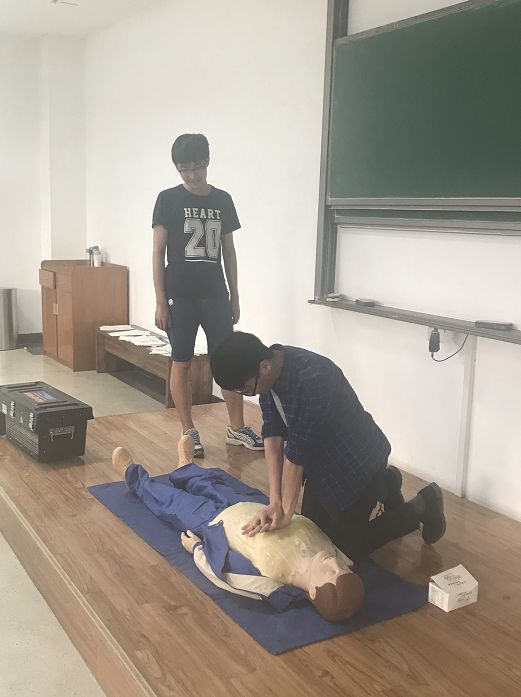 体验馆的付萌萌老师仔细讲解了灭火器的使用方法,鼓励同学们上台亲身体验模拟灭火过程;付老师讲了火灾自救的各种结绳方式,手把手教会同学们如何迅速准确的系好各类绳;随后,付老师还教同学们如何对伤者进行心肺复苏。