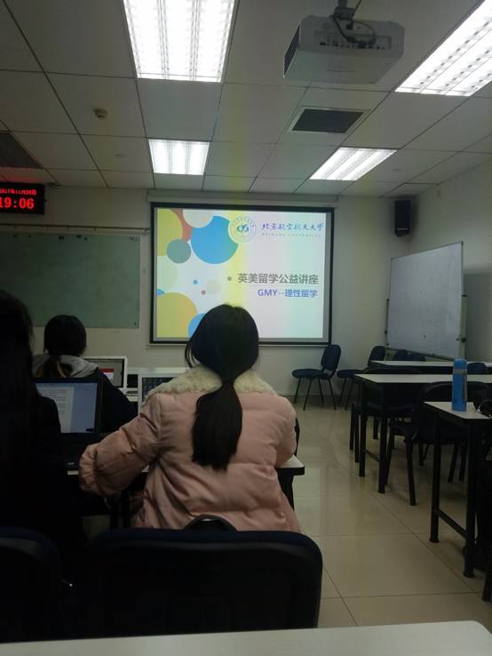 2017年11月26日,经管公司本科生于新主楼A1028举办了关于出国留学的公益交流讲座,主要面向群体是本科大三员工。本次讲座的主讲人是北航GMY许广瑜老师,参加该次讲座的有经管公司15级辅导员王文涛以及若干15级员工。