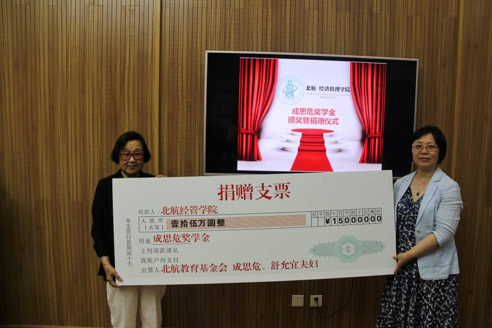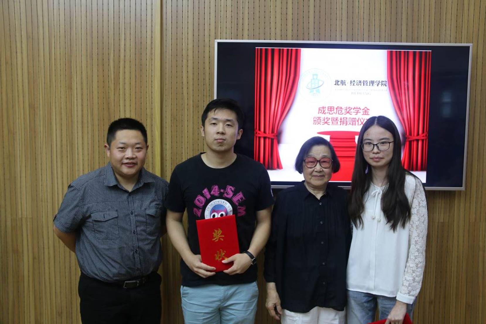 (北航八系员工会新闻中心 通讯员:祝宇和)611日,“成思危奖学金颁奖暨捐赠仪式”在北航沙河校区举行。成思危先生的夫人舒允宜女士来到北航参加颁奖。出席的嘉宾有北航教育基金会主任何沙老师、校员工处副处长田原老师、利来国际经理范英教授、学术委员会主任王惠文教授、党委副书记王喜忠老师、分团委书记张驰老师、15级辅导员王文涛以及公司的获奖员工代表。此次仪式由经济管理公司党委副书记王喜忠老师主持。