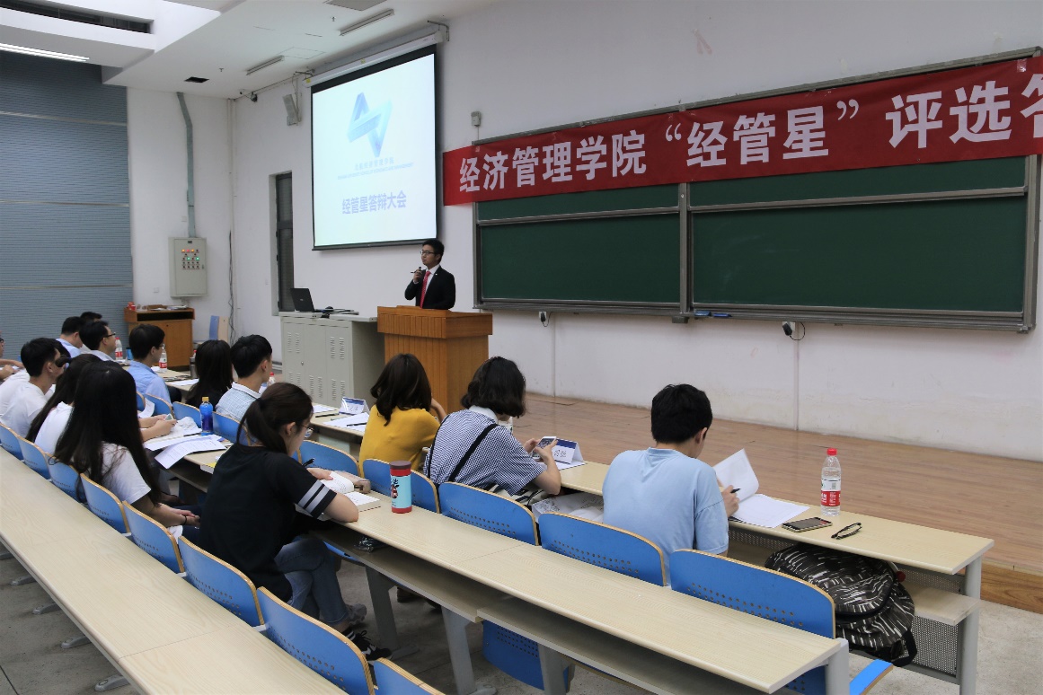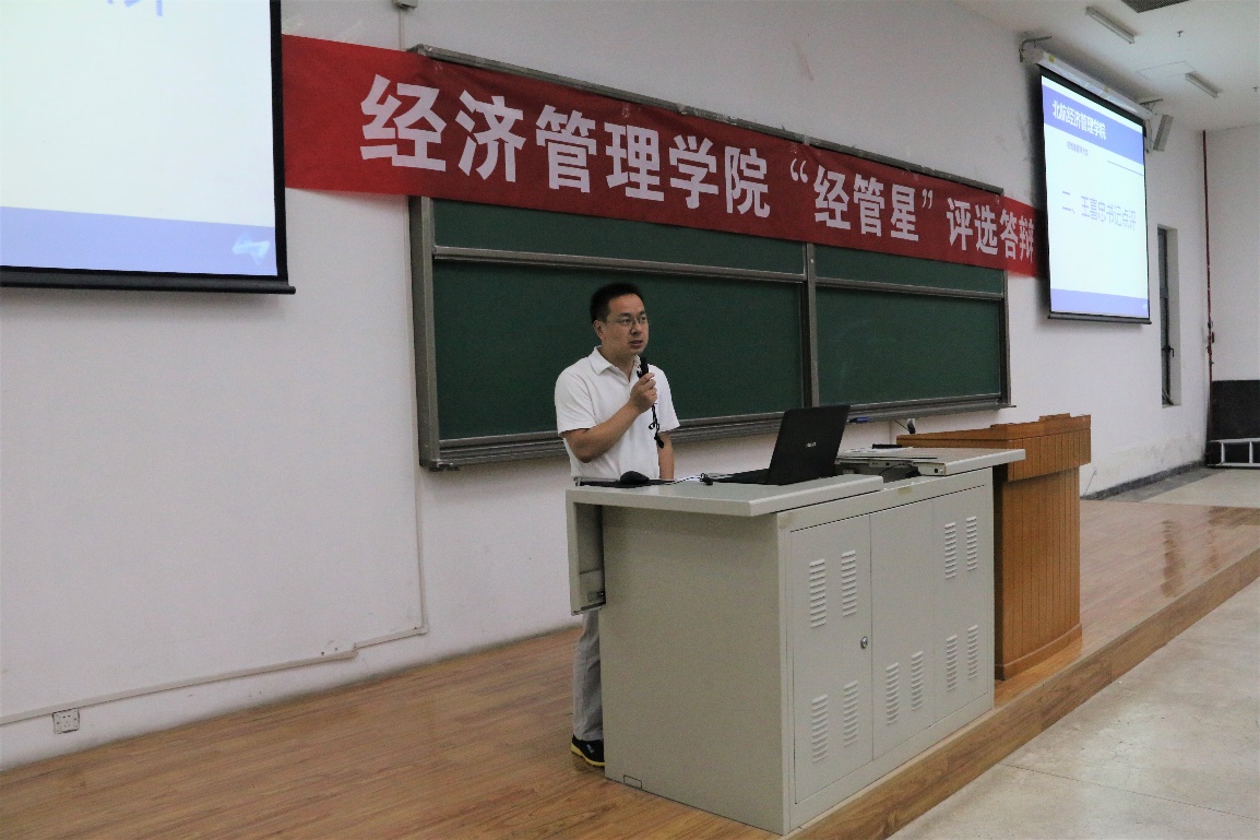 最后,王喜忠副书记进行了总结讲话。他强调,优秀是一种习惯;优秀需要一种氛围,共同促进共同进步;优秀是一种传承,用榜样的力量激发责任感和方向感。他鼓励每一位同学找到自己的前20%,努力成为优秀的人,并为社会做出自己的贡献。晚21:00,“经管星”评选答辩大会在同学们热烈的掌声中圆满结束。