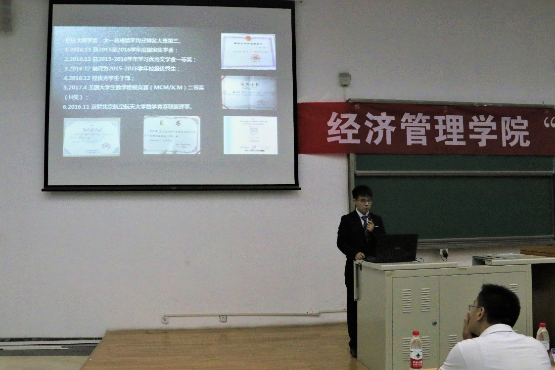 在学海领航星的答辩环节,来自各个年级的在学习方面表现突出的同学依次分享了自己的学习故事,展示了自己独特的学习方法与学习成果。信管专业的孟子涵同学在学习本专业课程之余,还积极选修其他专业五门课,创造了额外选修13学分的纪录;万莉同学讲到了逐年攀升的学习成绩背后的努力与坚持;孙铭顺同学擅长数学,获得多项数学竞赛荣誉;赵婧羽同学讲到了夯实基础学有所用;石岩松同学在学习之余积极推动本班学风建设。