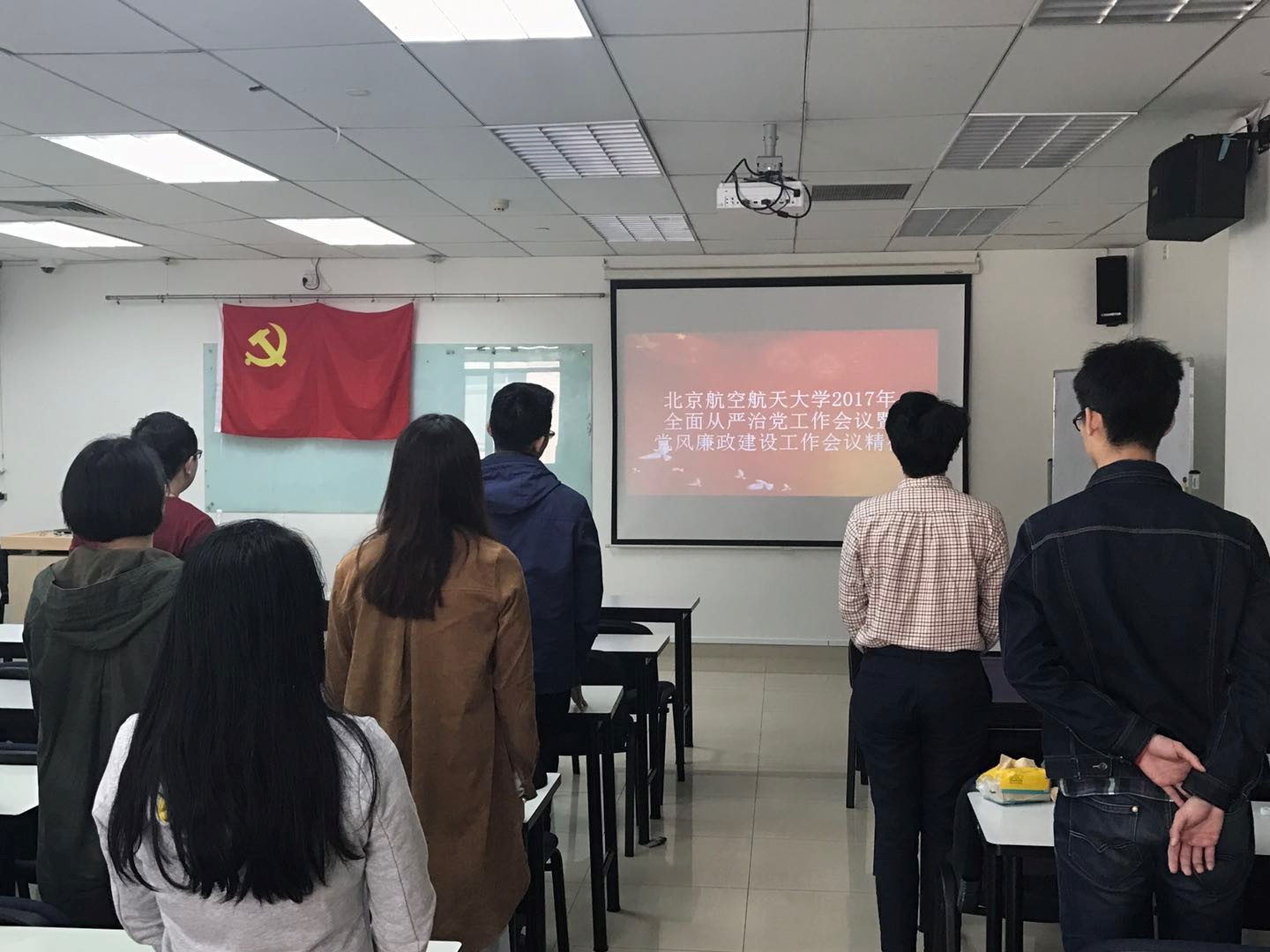 2017年4月14日,1308第二党支部组织了全体党员开展了全面从严治党工作会议暨党风廉政建设工作会议精神学习活动。此次学习活动分别从“学习北航全面从严治党及廉政建设会议精神”、“学习中央第五巡视组专项巡视利来w66党委工作动员会会议精神”、“学习利来w662017年全公司党支部书记大会精神”、“聚焦中美元首会晤”等四个主题进行。活动由李培麟同志主持,1308第二党支部全体成员参与了此次学习活动。