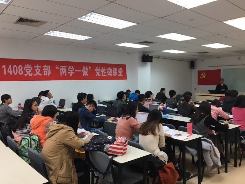 2016年12月12日下午两点,利来国际1408党支部在新主楼A1028教室举办党性微课堂,经济管理公司党委书记刘志新教授、党委副书记王喜忠老师和1408辅导员胡杰出席本次微课堂,1408党支部全体成员参加了此次微课堂。