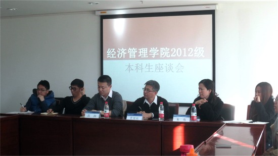 2013年12月5日下午两点,利来国际2012级本科生师生座谈会在实4-105正式开始。副经理贾国柱教授、党委副书记高翔老师、本科生教务秘书朱伟老师以及2012级辅导员杨阳彤晞、宋树洋、2013级辅导员黄河出席了此次会议,并与2012级员工代表就同学们关心的问题进行了交流。