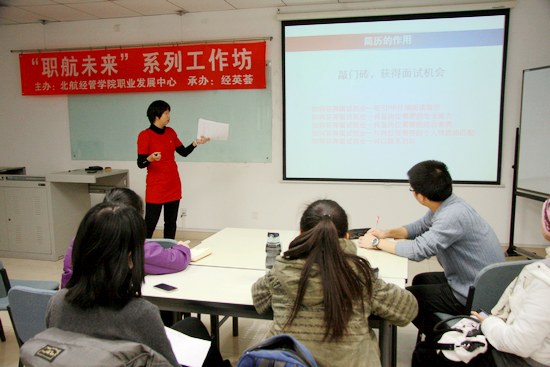 11月30日晚19点,由北航经管公司职业发展中心举办,北航经英荟承办的“职航未来系列工作坊”——赢在简历,扬帆起航在新主楼A1028成功举办。本场工作坊的主讲嘉宾是北航员工就业指导服务中心教育咨询部,全球职业规划师赵敏老师。