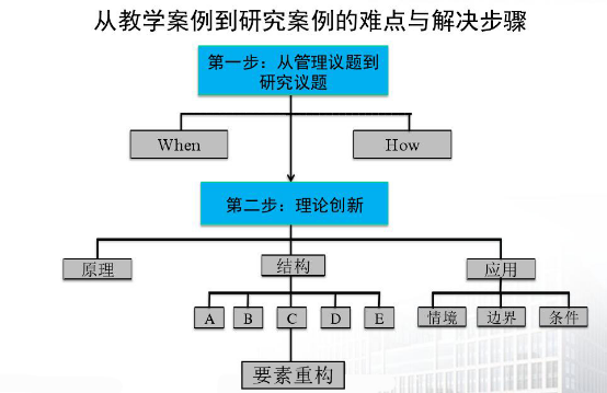 从教学案例到研究案例的难点主要有二点:①从管理议题到提炼科学的研究问题。教学案例的开发主要从管理实践中提出管理的议题;而研究案例论文的发表更关注如何从个案的管理议题上升到具有普适性的科学研究问题。②从理论运用到理论创新。教学案例开发主要体现在运用经典的管理理论解释管理实践活动;而研究案例的论文发表更关注理论的创新。解决教学案例到研究案例开发的难点有如下二个步骤: