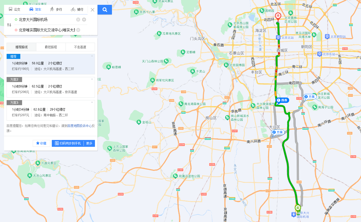 驾车:全程60公里,预计1小时10分钟,费用约200元左右。