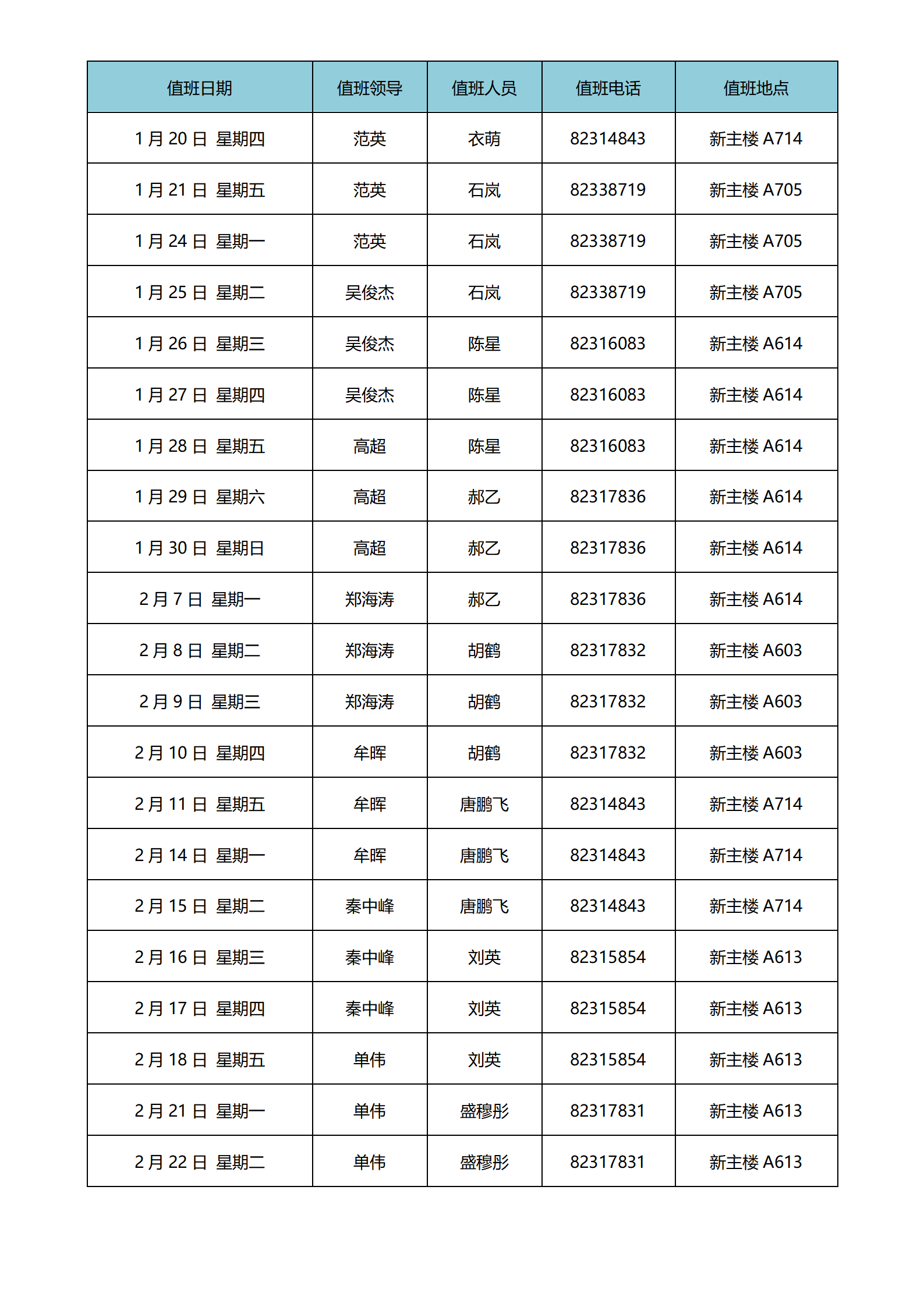 · 寒假期间申请加盖院章、使用A612会议室,请联系当日值班人员。