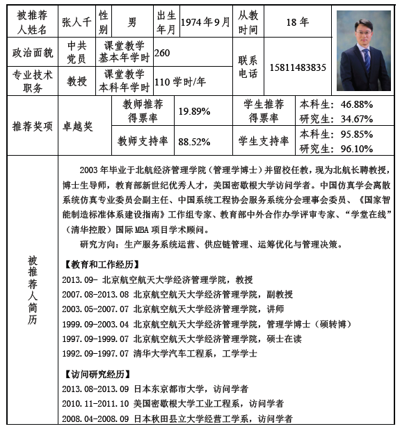 2021年5月26日至6月17日,经公司师生投票推荐、公司党政联席会遴选、师生支持度投票等多个环节,公司拟推荐“立德树人卓越奖”候选人1名——张人千,“立德树人优秀奖”候选人1名——白明。根据《利来w66立德树人奖评选奖励办法(试行)》,为体现公开、公平、公正的原则,现将2021年利来国际“立德树人奖”拟推荐候选人材料予以公示。