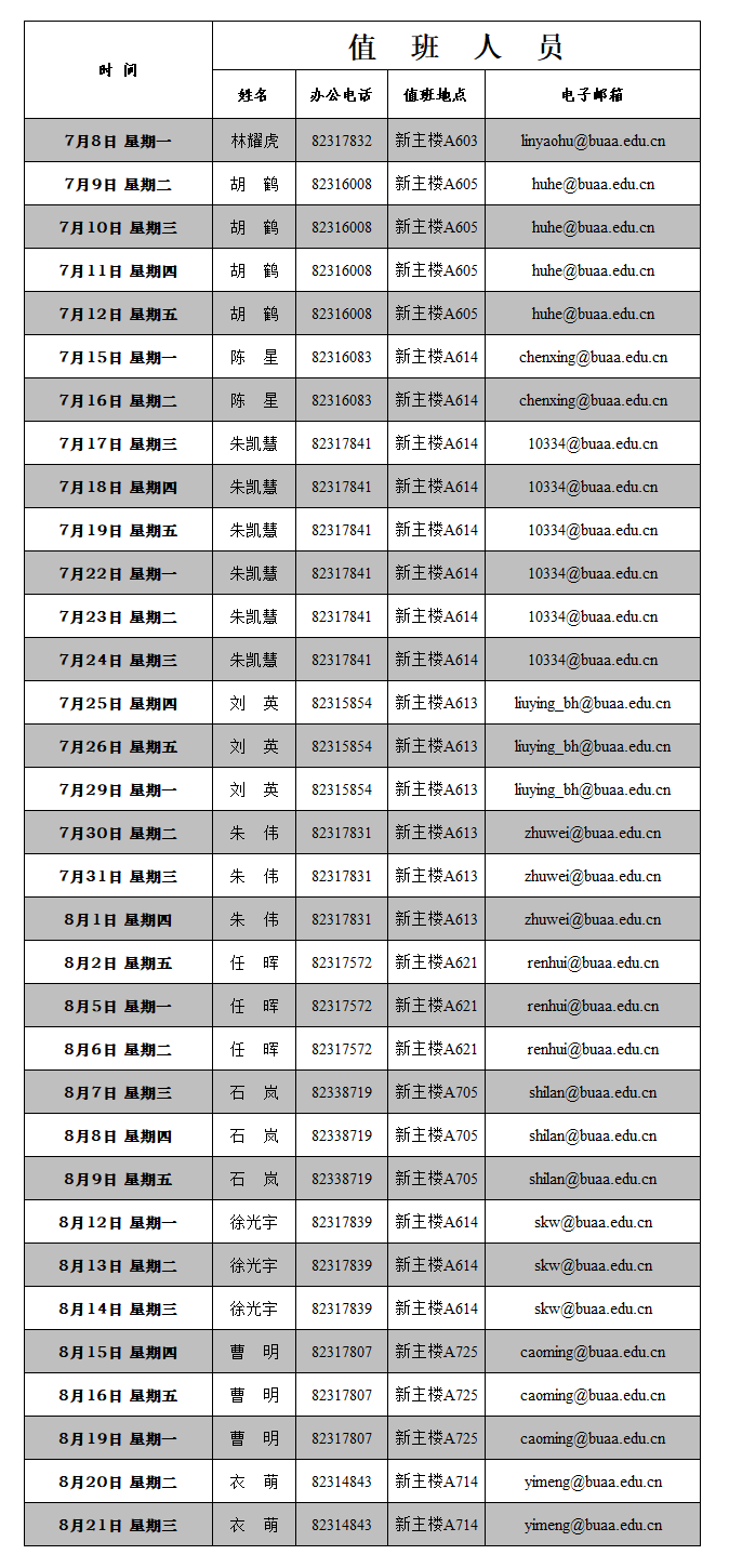 2.暑假期间申请使用院章和会议室(A612)请联系当日值班人员。