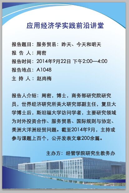 应用经济学实践前沿讲堂——服务贸易:昨天、今天和明天