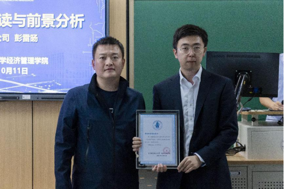 彭雷旸总经理在讲座中介绍了公募REITs(Real Estate Investment Trusts,不动产投资信托基金)这款产品,对比了发行REITs与常见的股票、债券以及基金等金融产品的异同,并基于基础设施公募REITs项目的发行标准、运作要求、产品实施流程、基金申报途径、交易架构等细节做了详细的介绍。最后,彭雷旸总经理通过对于公募REITs的实操解读、国内外市场对比以及股票债券等产品对比、已上市案例分享等方面来解读此种新的证券品种,帮助同学们进一步了解公募REITs市场以及职业发展前景。彭雷旸总经理与参加讲座的师生们进行了深入的学术交流,讨论了金融市场的现状与就业等相关问题。本期经管大讲堂在热烈讨论的氛围中圆满结束。