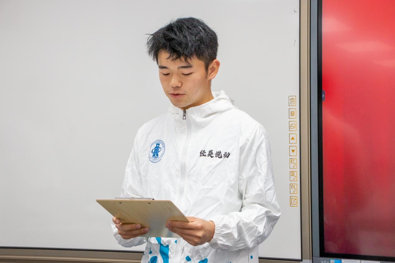 本科2020级员工李沛阳代表上期“经英悦动”体育俱乐部学员发言,他分享了自己在"经英悦动"体育俱乐部中的成长和收获,感谢了教练们的悉心指导和同学们的陪伴。新学期将会有更多的同学加入到这个大家庭中,一起努力、一起成长。