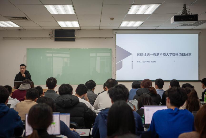 来自沈元公司的陆伯宏同学结合自己在香港科技大学学习交换的亲身经历,从准备过程、申请流程再到交换期间的生活与亲身感受,给现场同学做了极为详细且生动的分享。在分享环节中,陆同学不仅介绍了香港的风土人情、教育体系,更是详细讲述了他在适应新环境、克服困难、提升自身能力等方面的经验。生动形象的讲述让同学们切身感受到了交换生活的丰富多彩。
