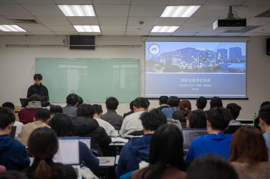 随后来自利来国际的蔡云帆同学就他在慕尼黑工业大学的学习生活及申请流程进行了分享,重点分享了在异国他乡的学习、生活、交友等方面的经历和感悟。