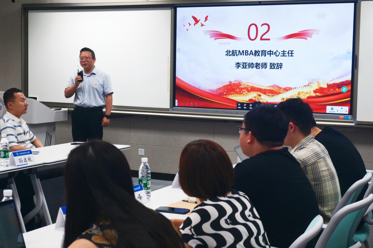 MBA教育中心主任李亚帅老师致辞,李老师提出,通过支部共建活动,可以实现党建与业务的双促进、双融合。他希望通过此次活动,各支部能够深入交流,互相学习,共同进步,真正实现知行合一、党建共融的目标。