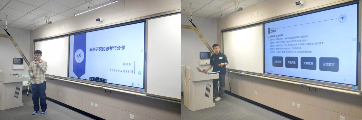 最后,BY2308党支部的两位同志分享了科研经验。何福东同志结合自身科研经历,分享了他在案例研究中的思考,并通过经典案例介绍如何进行案例研究;孙启航同志分享了多个实用的科研工具,帮助大家从文献检索、文献阅读、文献管理、论文写作等多个方面提高效率。