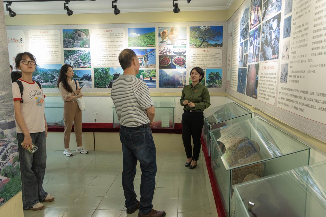 交流结束后,张建平书记带领北航师生参观了洪水峪村史馆,详细介绍了洪水峪村悠久的历史渊源、英勇的抗战历史以及近年来的产业发展和文明建设,师生们深刻感受到鸿水峪村在党的领导下取得的巨大变化,以及乡村振兴战略带来的蓬勃生机。
