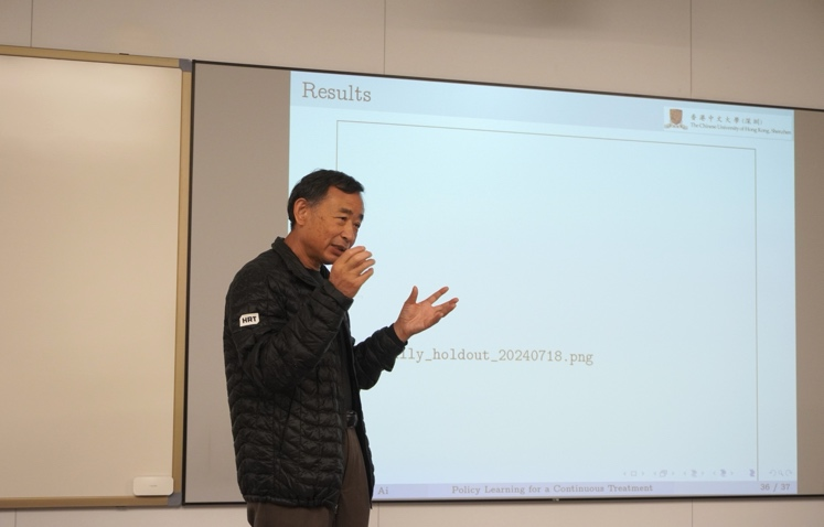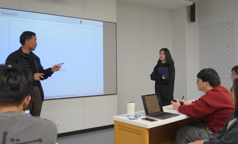 活动伊始,艾春荣教授围绕四个方面深入介绍了其在经济学领域的最新研究成果。师生们围绕估计经验IPW福利偏差界限的方法等具体问题展开讨论,艾教授耐详细地进行解答,同时也为同学们开展自身的学术研究提供了宝贵建议。