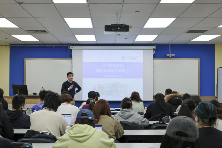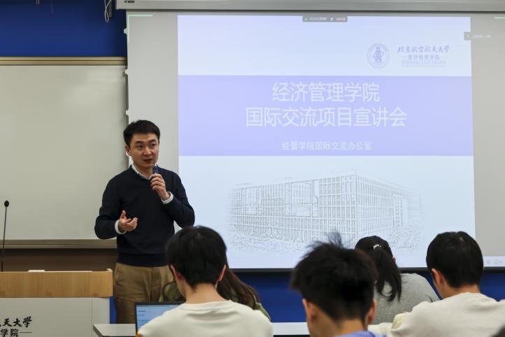 郝壮老师系统解读了公司和公司现有的国际交流项目体系,涵盖校级“远航计划”与院级特色交换项目。员工们可通过北航远航网进一步了解感兴趣的校级国际交流项目;公司与海外商公司持续构建定向合作机制,为同学们提供了更加多元的符合经管自身特色的院级交换项目。郝老师提到,公司也非常鼓励同学们积极报名国际交流项目,后续公司也将加大对中长期国际交流项目的资助力度,助力更多同学走出国门,拓展国际视野。