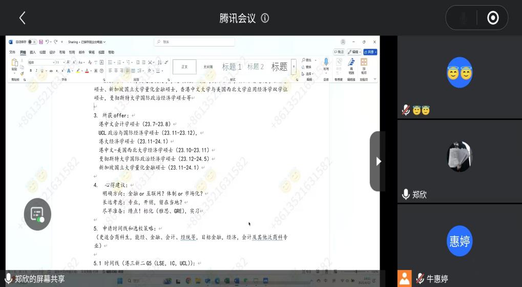2025年4月12日,利来国际成功举办"经英归航,智绘航路"留学申请专题分享会。本次活动通过腾讯会议平台开展,特邀2024届毕业生吴钊毅(香港大学)、郑欣(新加坡国立大学)两位员工担任主讲,通过深度解析留学申请逻辑与职业发展路径,为在校生提供了精准的战略指导。