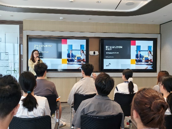交流会上,普华永道人力资源部负责人介绍公司的全球布局、人才培养及招聘政策,勾勒职业成长路径。会计专业员工纵向党支部书记杨艾恕作为员工代表介绍会计专业员工基本情况与后续规划,结合职业道德规范,阐述活动规划。北航员工、普华永道高级经理郭先生分享十年职业成长历程,强调企业“持续学习”生态与职业道德的契合。交流环节中,师生就实习、科技应用、道德困境等方面进行研讨。