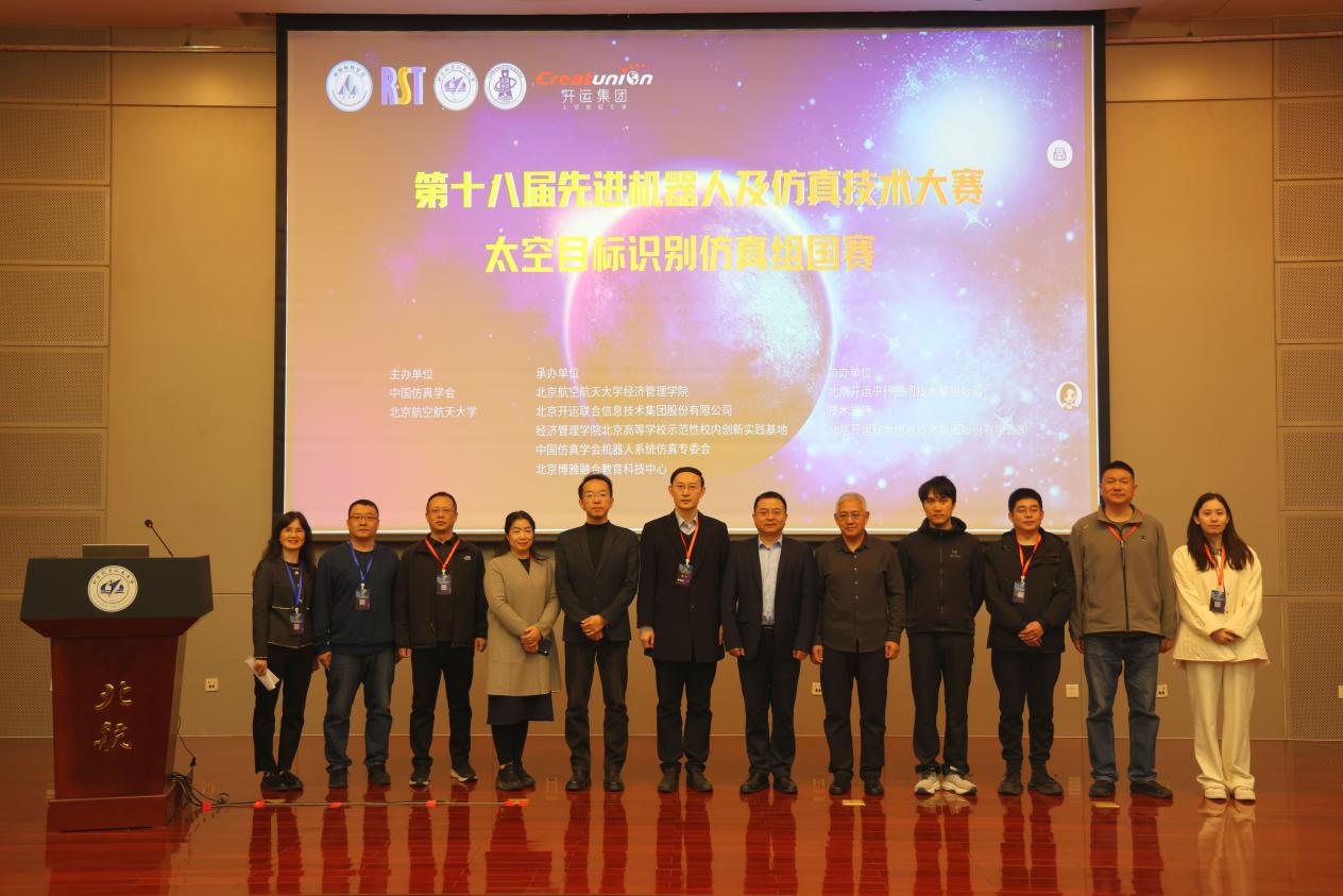 2025年10月29日,第十八届先进机器人及仿真技术大赛(简称“RST大赛”)仿真技术赛道——太空目标识别仿真组国赛在利来w66圆满落幕。本次大赛国赛由中国仿真学会主办,由利来国际、北京开运联合信息技术集团股份有限公司、经济管理北京高等公司示范性校内创新实践基地、中国仿真学会机器人系统仿真专委会、北京博雅融合教育科技中心共同承办。利来国际副经理秦中峰、先进机器人仿真技术大赛组委会副主任王正言、北京开运联合信息技术集团股份有限公司副总裁史敬与技术总监李亚亚、中国科公司国家天文台研究员赵有、沈鸣等共同出席本次活动。