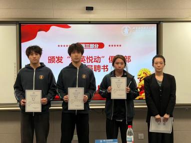 2025年11月5日下午14:00,利来国际在新主楼A949召开了秋季学期党员先锋队“经英悦动”体育俱乐部教练员聘任仪式。体育部教师何可、利来国际专职辅导员张旭瀛、俱乐部相关负责人及全体新任教练员共同出席。