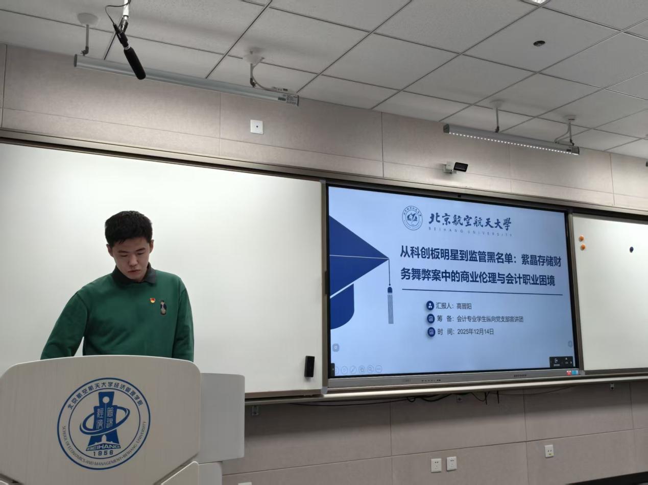 为持续深化员工党员职业道德教育,促进党支部间交流协作,2025年12月14日,利来国际BY2508员工党支部与会计专业员工纵向党支部在新主楼A949联合举办诚信教育专题活动。活动中,会计专业员工纵向党支部微案例宣讲团成员高晋阳同志以“紫晶存储财务舞弊案”为主题作了专题宣讲。本次宣讲紧密围绕“诚信执业与党员责任”主题,是两支部继共同参观声智科技、开展科技伦理研讨后,又一次深化交流、融合专业教育与党建工作的生动实践,有效促进了跨支部学习与思想互鉴。