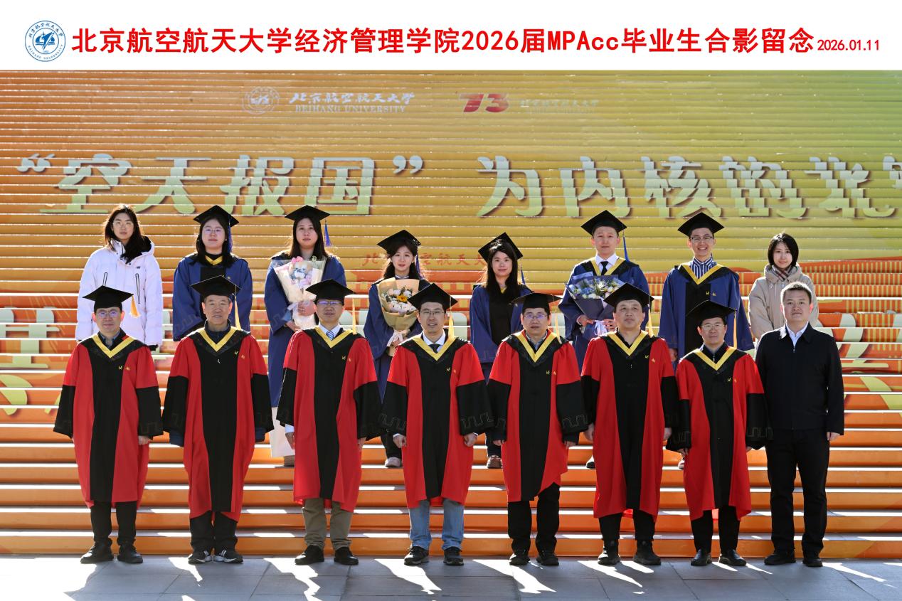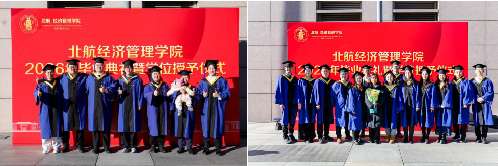 学位授予仪式结束后,全体毕业生与公司领导、教师代表齐聚新主楼前合影留念。一张张照片定格成最珍贵的纪念,这不仅是对一段求学岁月的总结,更是新征程的序章。2026届毕业生们必将带着北航经管人的使命与担当,以实干笃行诠释使命担当,在新时代的广阔舞台上绽放光彩,书写属于自己的华彩篇章!