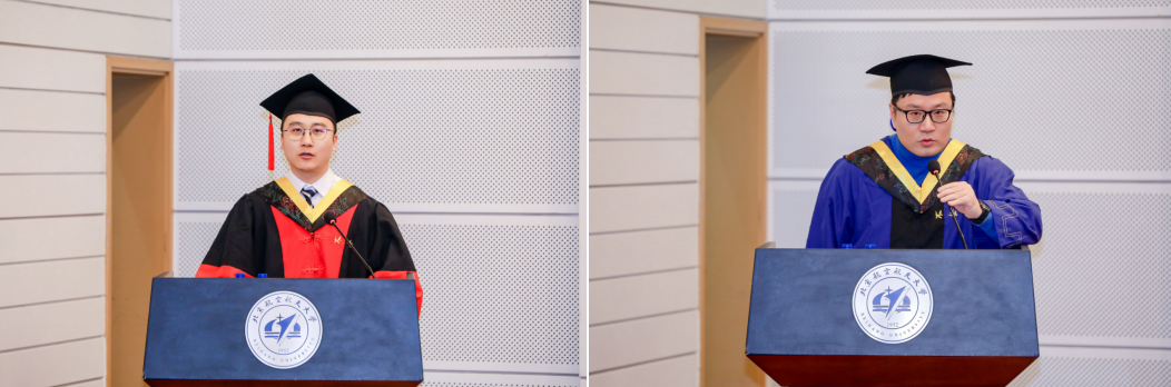 随后,全日制毕业生代表徐璞、非全日制毕业生代表牛欣荟分别发言。他们深情感谢公司搭建的科研发展平台与导师的悉心培养,结合在科研求学、“一案两实”及多元活动中的成长感悟,坚定表示将秉承北航人务实笃行的精神血脉,以实际行动践行使命担当,为社会发展贡献力量,为母校续写荣光。