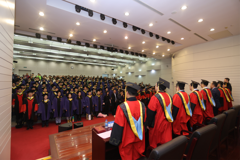 激昂悠扬的校歌《仰望星空》齐唱后,毕业典礼圆满落下帷幕。随后,举行学位授予仪式,公司领导和导师代表为在场每一位学子拨苏正冠、颁授学位,声声祝福饱含着师长对后辈逐梦远航的殷切期盼。