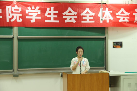 接下来,下一任轮值部长——文艺部部长郭雅雯发言,她介绍了经管公司近期主要活动,如新生舞会、新生杯篮球赛等活动的安排,并在最后欢迎各位干事们加入员工会。发言结束后,15级辅导员王晨对本次会议做出了总结,她表示十月任务繁重,期待大家的完美表现。
