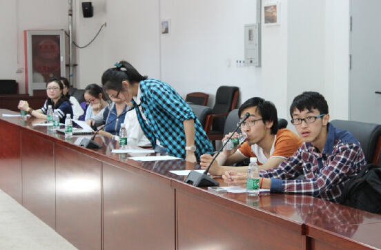 2015年5月19日星期二下午四点半,经管公司党委副书记王喜忠老师与1408部分同学在沙河校区实四106会议室开展交流会,闫琦与胡杰辅导员出席交流会。