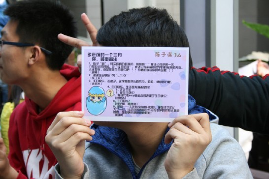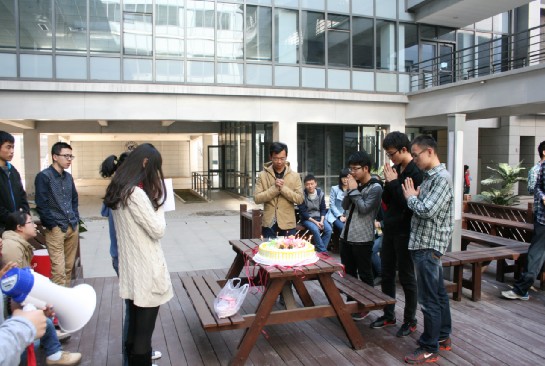 活动开始后,主持人首先请上过生日的同学,并做介绍。随后,在大家集体唱着生日歌的同时,寿星们许下了各自的心愿,吹灭蜡烛后,寿星们共同切蛋糕,象征又长了一岁。之后,对寿星送小卡片的环节,将生日会推向高潮。大班委提前通过网络、串宿舍的方式,收集了同学们对寿星想说的话,写在卡片上。寿星收到卡片后可以根据自己的意愿进行宣读。生日会荡漾着温馨的气氛。