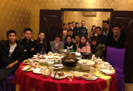 12月30日晚,借着圣诞已至,元旦将临这一欢庆契机,SY13081班同学结伴而聚,畅谈起这一学期共度的美好时光和接下来将迎来的考期。当天晚上的聚餐,同学们更是畅所欲言,从素质拓展谈到校园寻宝,从包饺子谈到元旦晚会,一个个温馨的话题和经典的桥段伴随着美味融入了每一个人的血液,久久不能忘怀。期间同学相互打趣,深入了解,整个活动过程气氛热烈,乐在其中。