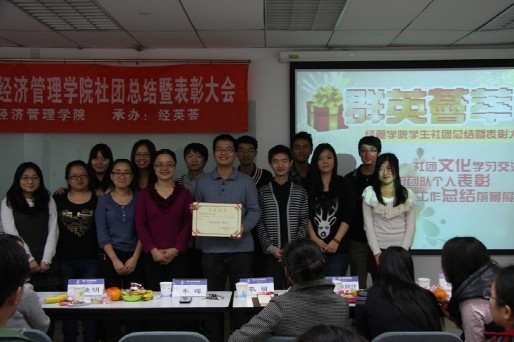 随后是各个社团的文化秀,各个社团播放了自己的视频,社团成员也各展才艺,表演了精彩的节目,同时,各个社团也对工作成绩突出的个人进行了表彰。看到自己的努力得到了肯定,同学们都很开心。