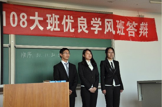 答辩会中,各班代表依照抽签顺序,从学习目的、学习态度、学习纪律、学习效果、课外科技文化活动等方面进行了介绍,展示了各班的学风建设特色。有的小班建立了书橱,以满足小班同学对优秀书籍的渴望;有的小班设立了英语角,使全班口语水平名列前茅;还有的小班充分利用小班内部资源,实行学习小组互助,在上年的所有考试中无一挂科。