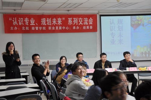 10月29日,由北航经管公司员工职业发展中心主办、北航经管公司经英荟、SY12081班承办的“认识专业、规划未来”系列交流会—管理科学与工程专场在A1128举办。
