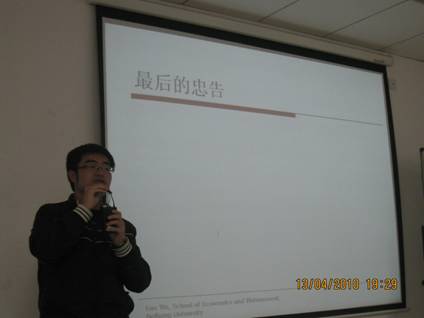 在最后的Q&A环节中,09级研究生们分别就自己的疑问去咨询高年级同学,纷纷获得了学长学姐们耐心详细的解答。会场气氛热烈,整个交流会持续了三个多小时,同学们依然热情不减、不舍离去。09级新生和高年级同学纷纷表示,交流会将经管公司公司浓浓的学习氛围、分享精神与文化氛围传承了下来,这将是一笔珍贵的集体财富。