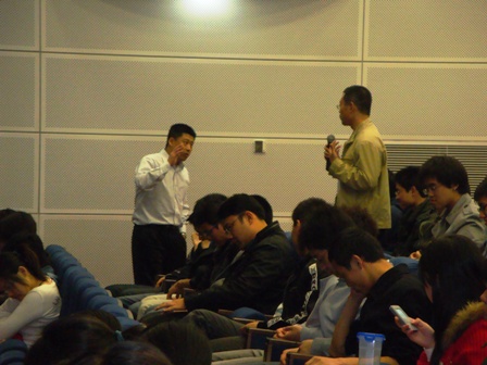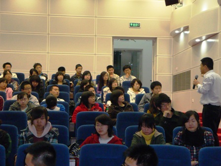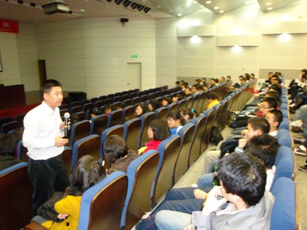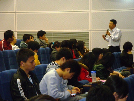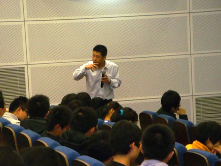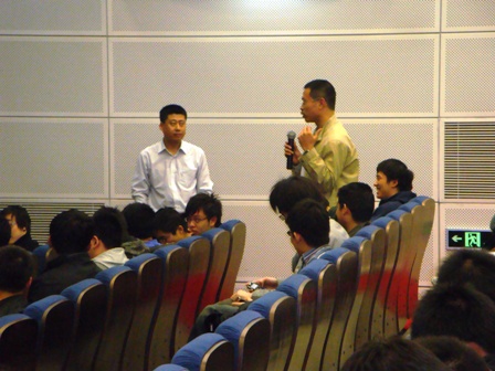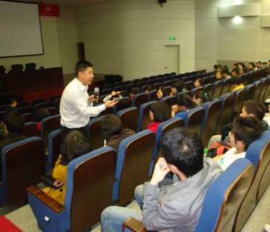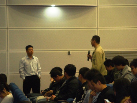 为切实解决此问题,3708大班联合3808大班在经管公司职业发展中心的支持下,于2009年3月16日19点在新主第二报告厅举行主题为:“起点北航 目瞻未来——与社会成功人士零距离交流”联合大班会,邀请倍腾企业顾问公司资深顾问、《输赢》作者付遥;风险投资Origo副总裁李腾飞;威海荣成大业海珍品有限公司董事总经理杨志军;张国立胞弟、著名导演张国宁分别就“成功学及自我激励”、“职业发展规划”、“从就业到创业”、“生活是最好的大学”四个主题进行近4个小时的交流并现场回答同学提问。