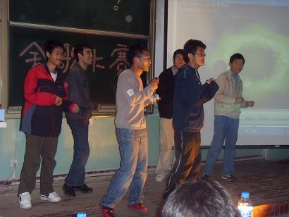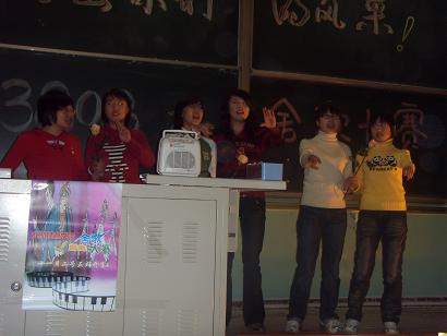 当晚,同学们或引吭高歌,或低声吟唱,或动感十足,或温婉典雅。同学们风格各异,表现出每个宿舍不同的特点。而现场的气氛也随着同学越来越投入变得越来越活跃,教室里每个角落都充满着同学们动听的歌声,观众的欢呼声以及掌声。有的观众甚至用自己的手机充当荧光棒,为同学加油助威.到了比赛尾声的时候,有的同学登上讲台独唱一曲,使整场的气氛达到高潮。最后,通过评委打分,女生208宿舍获得桂冠,并将幸运大奖捧回了家。男生308宿舍,女生213宿舍分获二,三等奖。值得一提的是,男生302宿舍以一曲串烧歌俘获了观众及评委,获得最佳人气奖;女生207宿舍的一曲《牡丹江》帮助她们赢得最佳天籁奖。