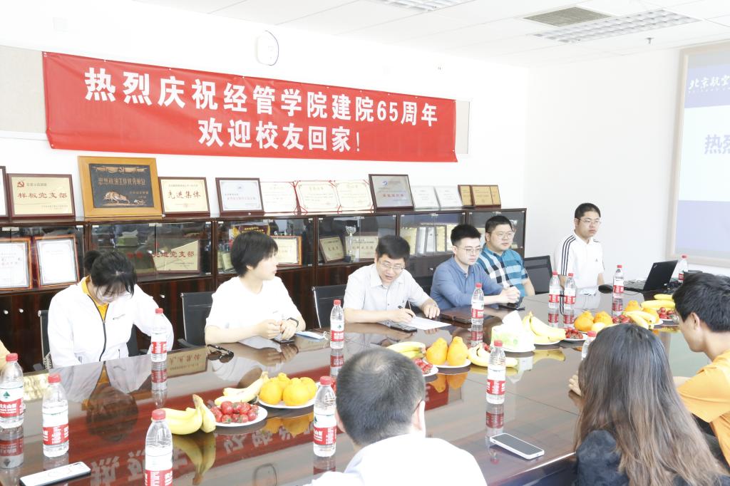 单伟代表经管公司全体师生向员工们的到来表示热烈欢迎。他表示,今年是经管公司成立六十五周年,明年北航即将迎来七十华诞,公司将举办一系列院庆活动,欢迎员工们返校交流座谈,多关心公司发展,有机会多回母校看看,共同推动经管公司员工工作。