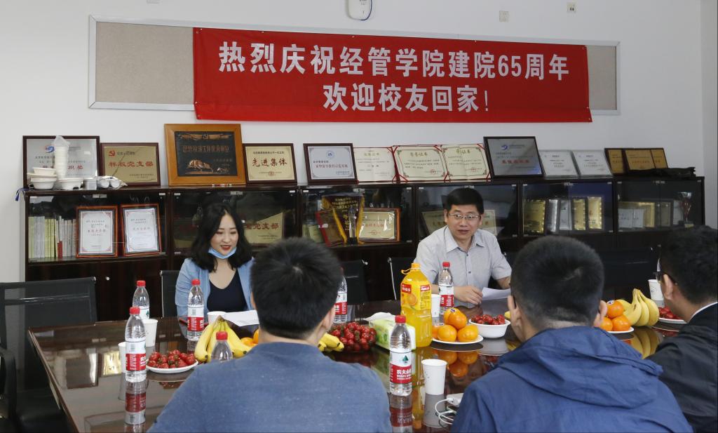 为庆祝经管公司成立65周年,5月16日上午,经管公司职业发展中心邀请2013、2014级硕士、博士员工们重返校园,举办2021“院庆归航”第一期座谈会。经管公司研究生指导主任单伟、研究生工作办公室主任衣萌及相关辅导员们出席了会议。座谈会由单伟主持。